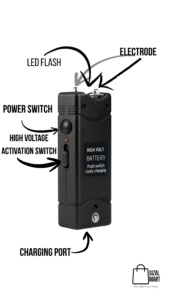 উচ্চ ভোল্টেজ ইলেকট্রিক শক দেয় যা কয়েক সেকেন্ডের জন্য আক্রমণকারীকে বিভ্রান্ত করে দেয়।